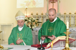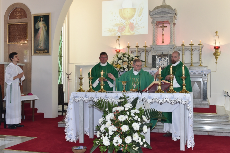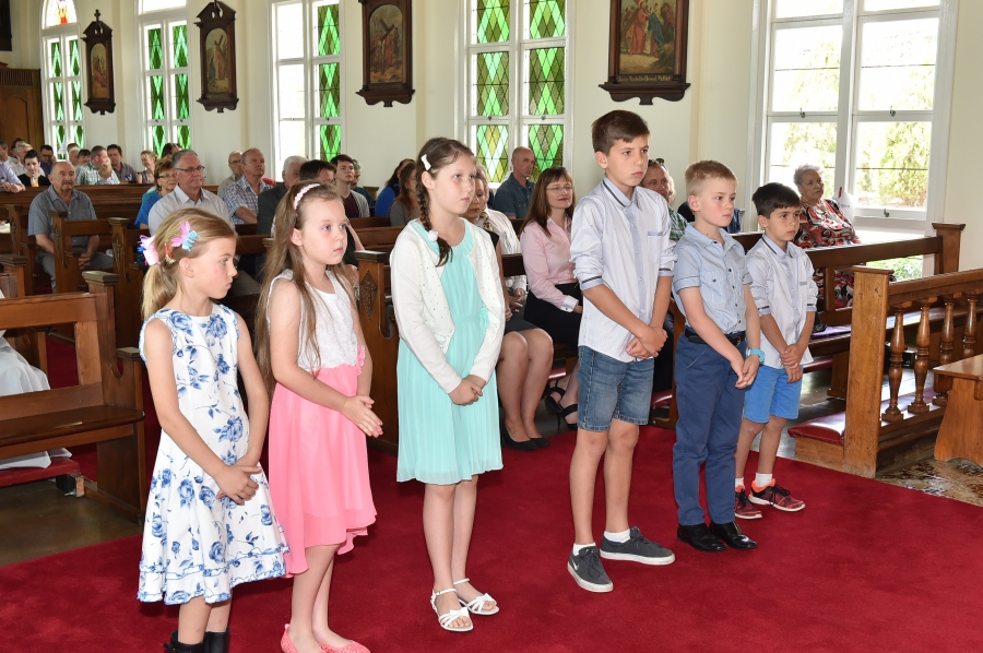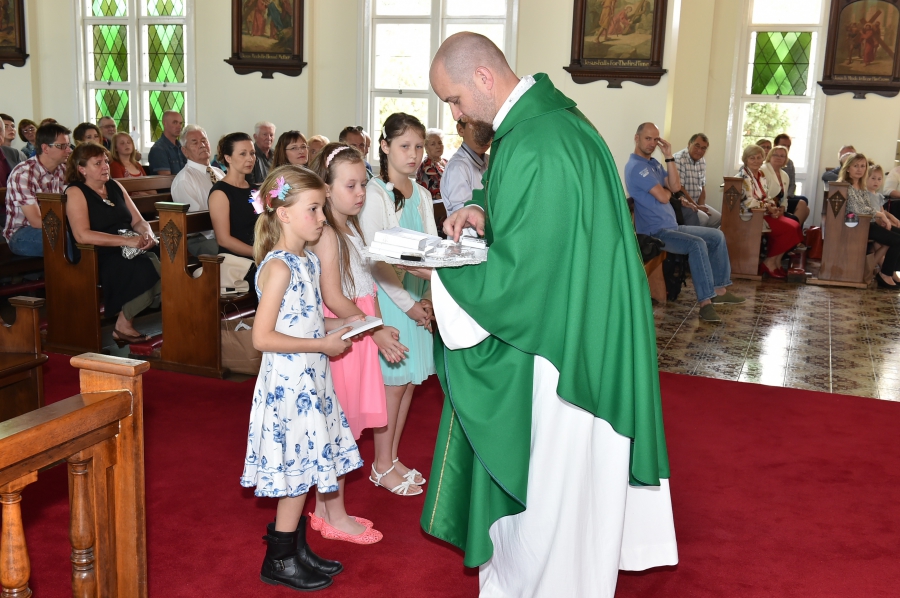 Na koniec Mszy św. ks. Andrzej Kołaczkowski SChr, proboszcz miejscowej parafii poświęcił książeczki i różańce dla dzieci pierwszokomunijnych. Miłą niespodzianką był także prezent, który ks. Biskup pozostawił wspólnocie polskiej w Brisbane. Była to specjalnie przygotowana tabliczka z podziękowaniem za przyjęcie oraz relikwie bł. Jerzego Popiełuszki.