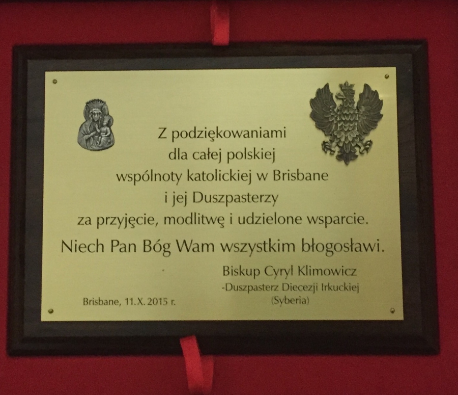 W niedzielę 11 października w naszym kościelę na Bowen Hills gościliśmy JE Bp Cyryla Klimowicza, ordynariusza diecezji św. Józefa na Syberii.