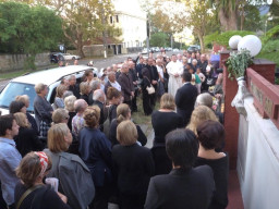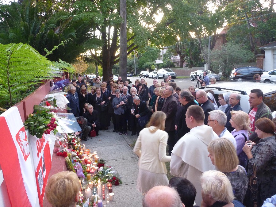 Z inicjatywy młodzieży polskiej, pocztą internetową i sms-ową wielu naszych Rodaków przybyło pod Konsulat RP w Sydney, by oddać cześć Poległym w wyniku katastrofy lotniczej samolotu prezydenckiego, lecącego na uroczystosci Katyńskie. Zebranych przywitał pan Konsul Generalny RP w Sydney Daniel Gromann, który wyraził i wzruszenie i wdzięczność za obecność tak wielu Polaków w tak ważnym dla nas czasie przy Konsulacie. Wszyscy zamarli w modlitwie, którą poprowadził ks. Artur Botur SChr. Dla wszystkich było to doświadczenie wspólnoty bólu, ale także przynależnosci do jednej rodziny. Wielu naszych Rodaków wpisywało sie później do Księgi Kondolencyjnej.