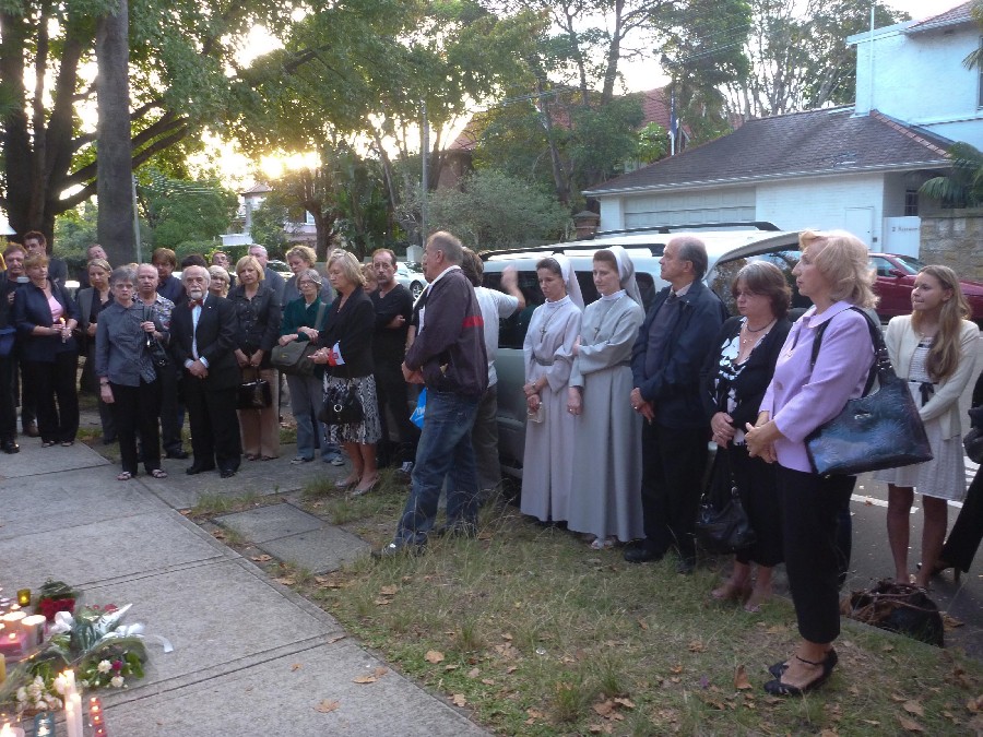 Wielu naszych Rodaków przybyło wieczorem w poniedziałek po Konsulat RP w Sydney by zapalić znicz pamięci i wspólnie trwać na modlitwie w intencji tragicznie zmarłych ofiar wypadku samolotowego pod Smoleńskiem.